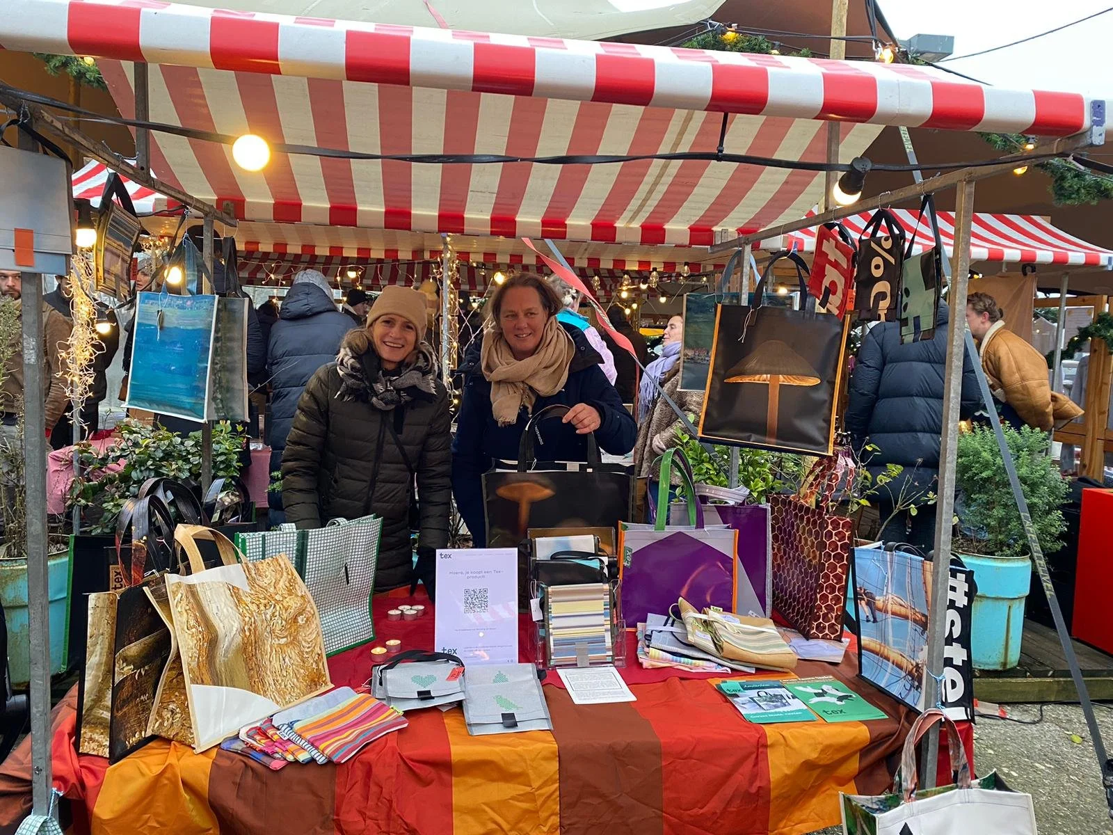 Er was vooral interesse voor onze tex-tassen en etuis van ‘upcycled’ oud textiel. We hopen volgend jaar weer mee te doen! In Amsterdam Noord bij kerstmarkt de Ceuvel.